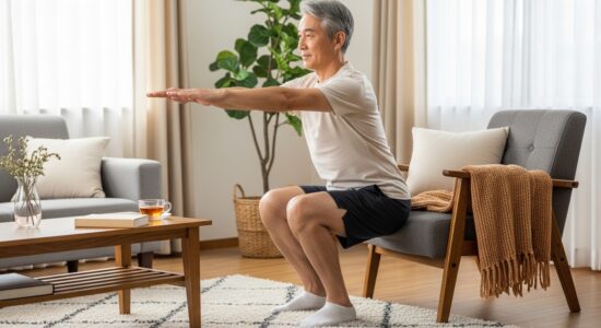 | 8 | イスギリギリスクワット | 12秒×4回。これ、効きます! ・安定した イス を後ろに置き・座面にお尻がつく“ギリギリ手前”まで腰を落とし ・そこで一瞬キープしてから立ち上がる という動きで、太もも・お尻・体幹を一気に鍛えます。 |