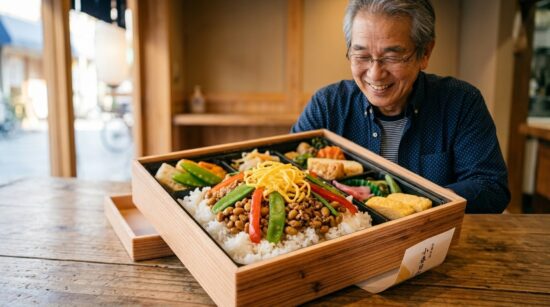お店では、なっと肉を使った美味しそうなお弁当も販売されています。